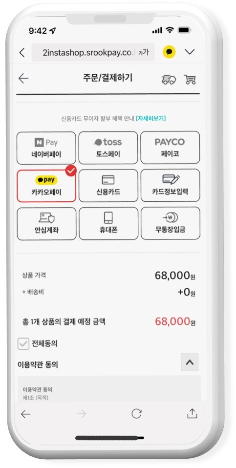 저희 스룩페이의 샵 주문/결제 페이지에 신규 간편결제 수단이 추가되었습니다.